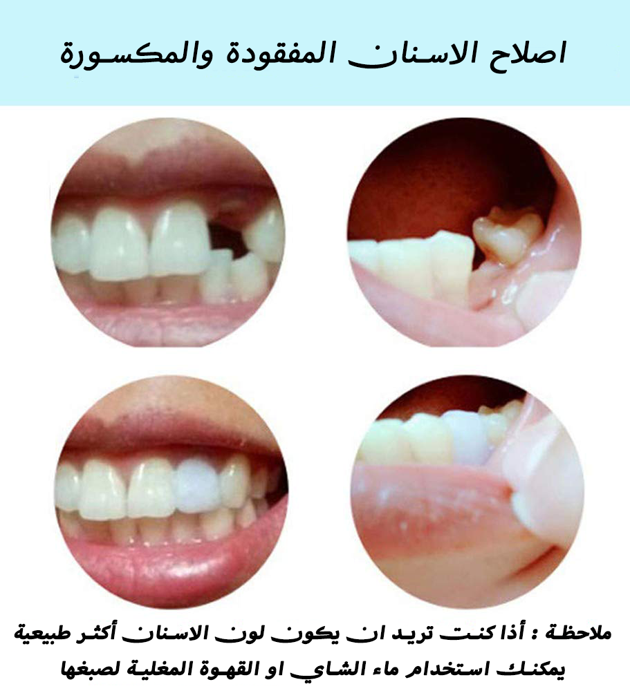 يمكن استخدامها للأسنان الزائدة ، والأسنان المكسورة ، والأسنان المفقودة ، إلخ.